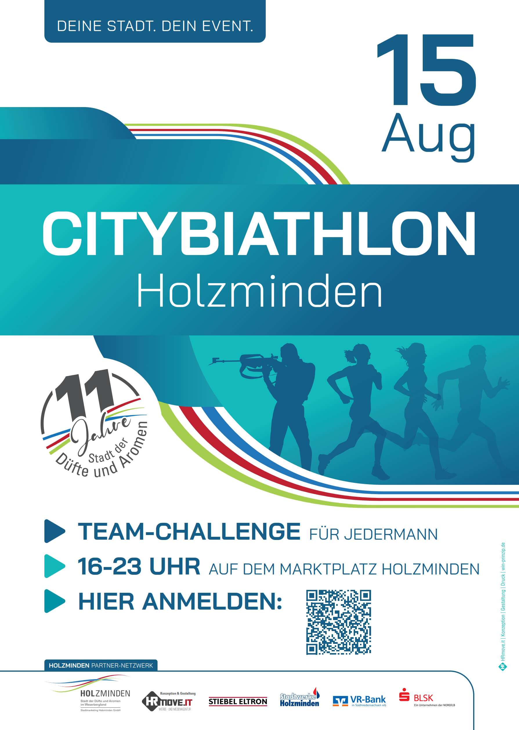 Der Citybiathlon in Holzminden ist mehr als nur ein Wettkampf. „Es ist ein Event für die ganze Familie, Freunde, Kollegen und alle, die Lust auf Bewegung, Teamgeist und eine Portion Abenteuer haben“, sagt Inga Schaper, die innerhalb der Stadtmarketing Holzminden GmbH den Citybiathlon federführend organisiert. „Das attraktive Veranstaltungsformat kombiniert Lauf- und Schießdisziplinen vor der großartigen Kulisse unseres Marktplatzes und garantiert sowohl sportliche Herausforderung als auch Spaß. Egal, ob Wiederholungstäter oder ob die Teilnahme zum ersten Mal beim Citybiathlon erfolgt – bei uns ist jeder herzlich willkommen!“