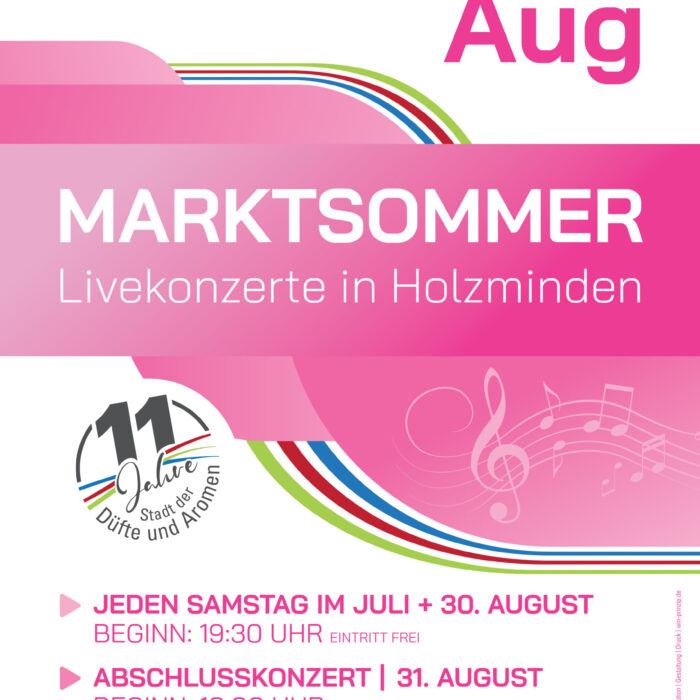 Beim vierten Marktsommer-Konzert treten die regional bekannten Musiker Joshua Tappe und Patrick Hörle als Acoustic Duo auf – verstärkt durch die talentierten Preisträger des Gesangswettbewerbs Vocal Hero und den Bandmitgliedern der „Teachers Finest“ der Musikschule Holzminden. Joshua Tappe, einem breiten Publikum als Finalist der 17. Staffel von Deutschland sucht den Superstar bekannt, begeistert mit seiner authentischen Stimme, ehrlichen Songs und musikalischer Vielfalt. Zusammen mit Keyboarder Patrick Hörle, der seit vielen Jahren als gefragter Musiker in der Region aktiv ist, präsentiert er als Acoustic Duo beim nächsten Marktsommer-Konzert eine mitreißende Mischung aus gefühlvollen Balladen und energiegeladenen Pop-Covern. Für zusätzliche musikalische Tiefe sorgen „Teachers Finest“, die Musikschullehrer und Vocal Hero-Bandmitglieder Dankward Pillmann, Andreas Pieper und Karl-Jakob Vogt. Auch die diesjährigen Vocal Hero Jurypreis-Gewinner Vlada Ilina (Jurypreis Altersgruppe I), Angelina Kieneke (stellvertretend für Ayla Thomson – Jurypreis Altersgruppe II) und Daniel Ritzenhoff (Jurypreis Altersgruppe III) stehen am Samstag auf der Marktplatzbühne.
