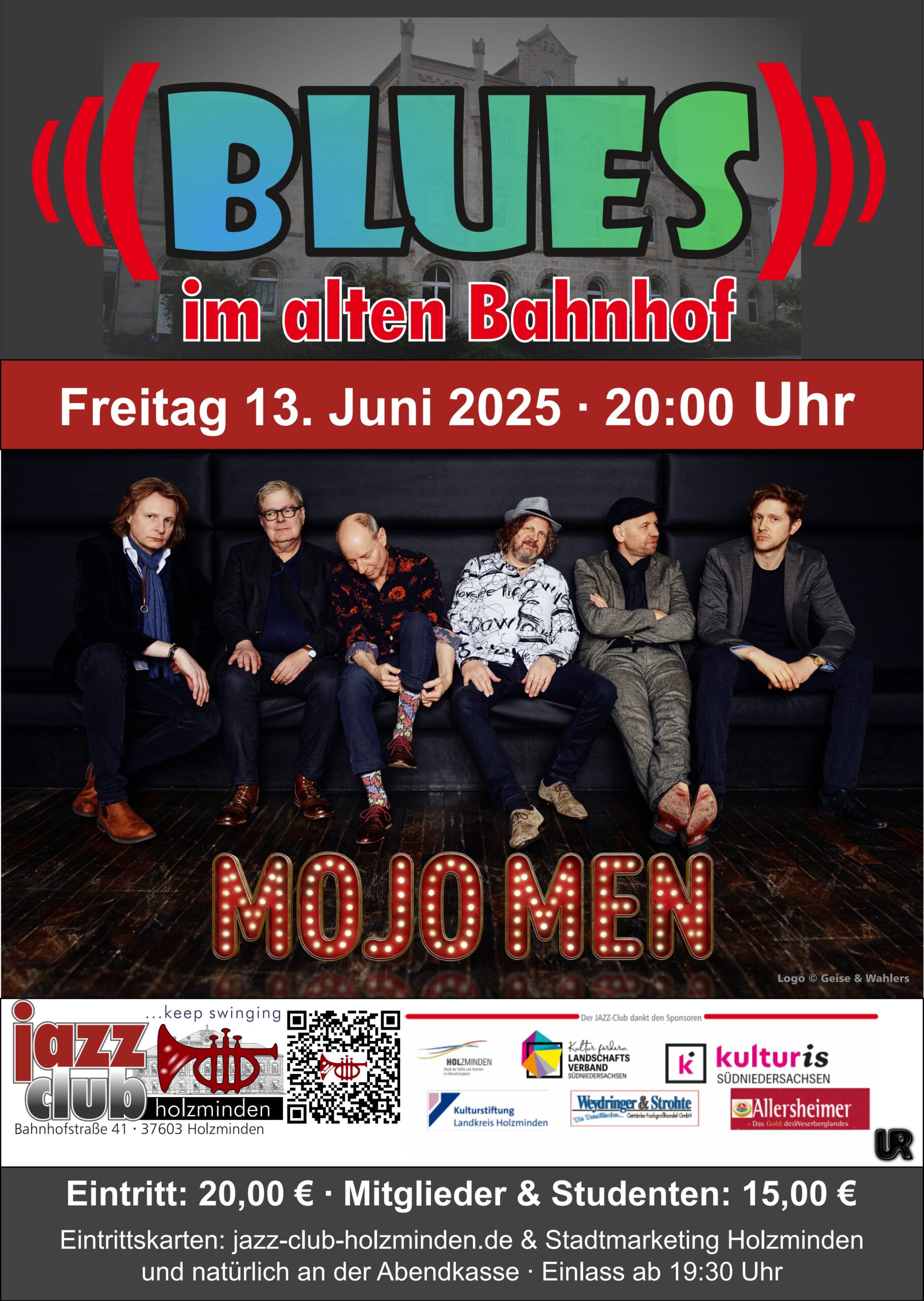 Die MOJO MEN garantieren 100% handgemachte, energiegeladene Livemusik aus der Bel Étage der europäischen Bluesmusikerszene, angeführt von einem der herausragenden R’n’B- und Blues-Sänger, Harp-Spieler, Storyteller und Performer, die je die USA verlassen haben, um in Europa ihr Glück zu suchen…