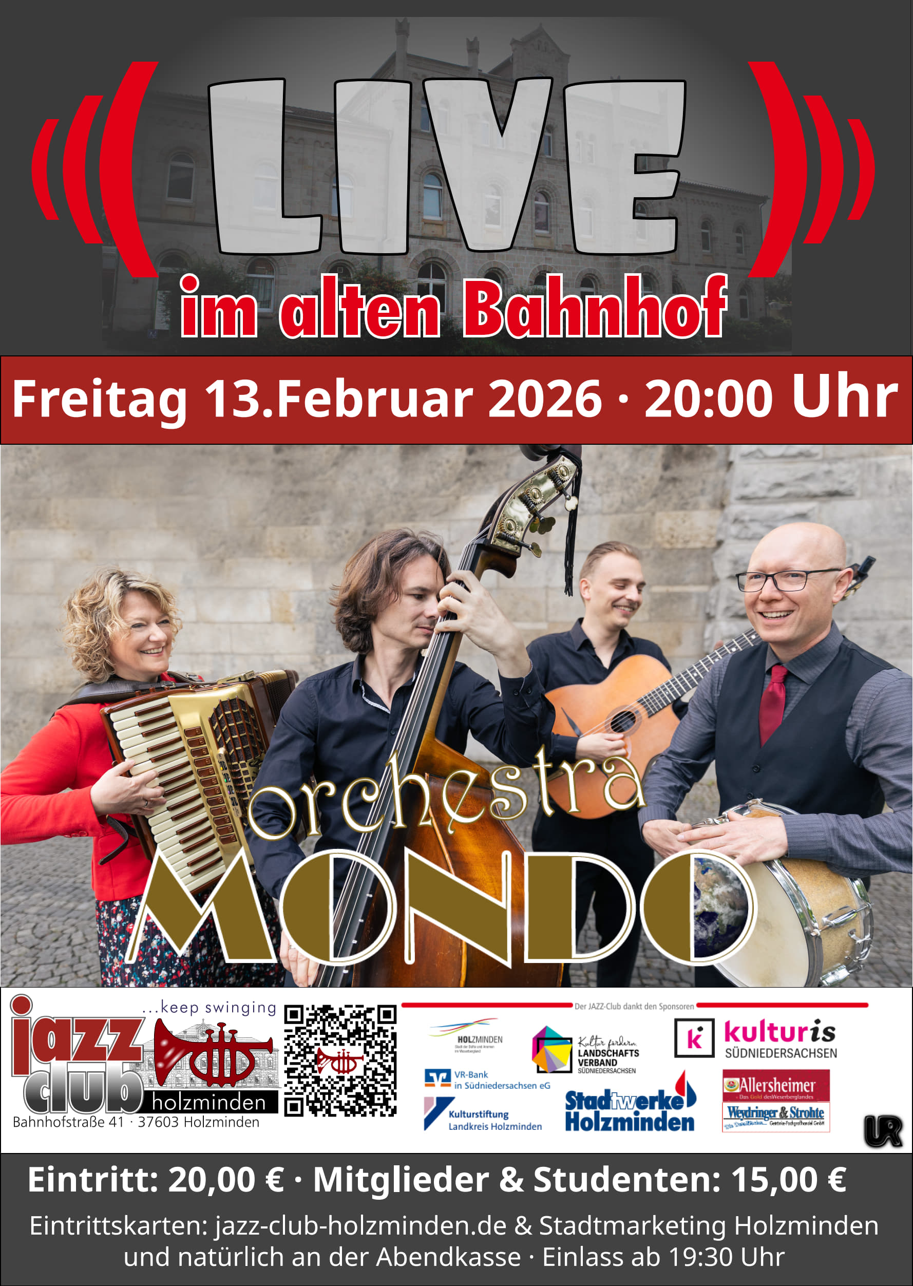 Ermäßigungen erhalten bei uns die Mitglieder des Jazz-Clubs, sowie Schüler, Studenten und Schwerbehinderte.