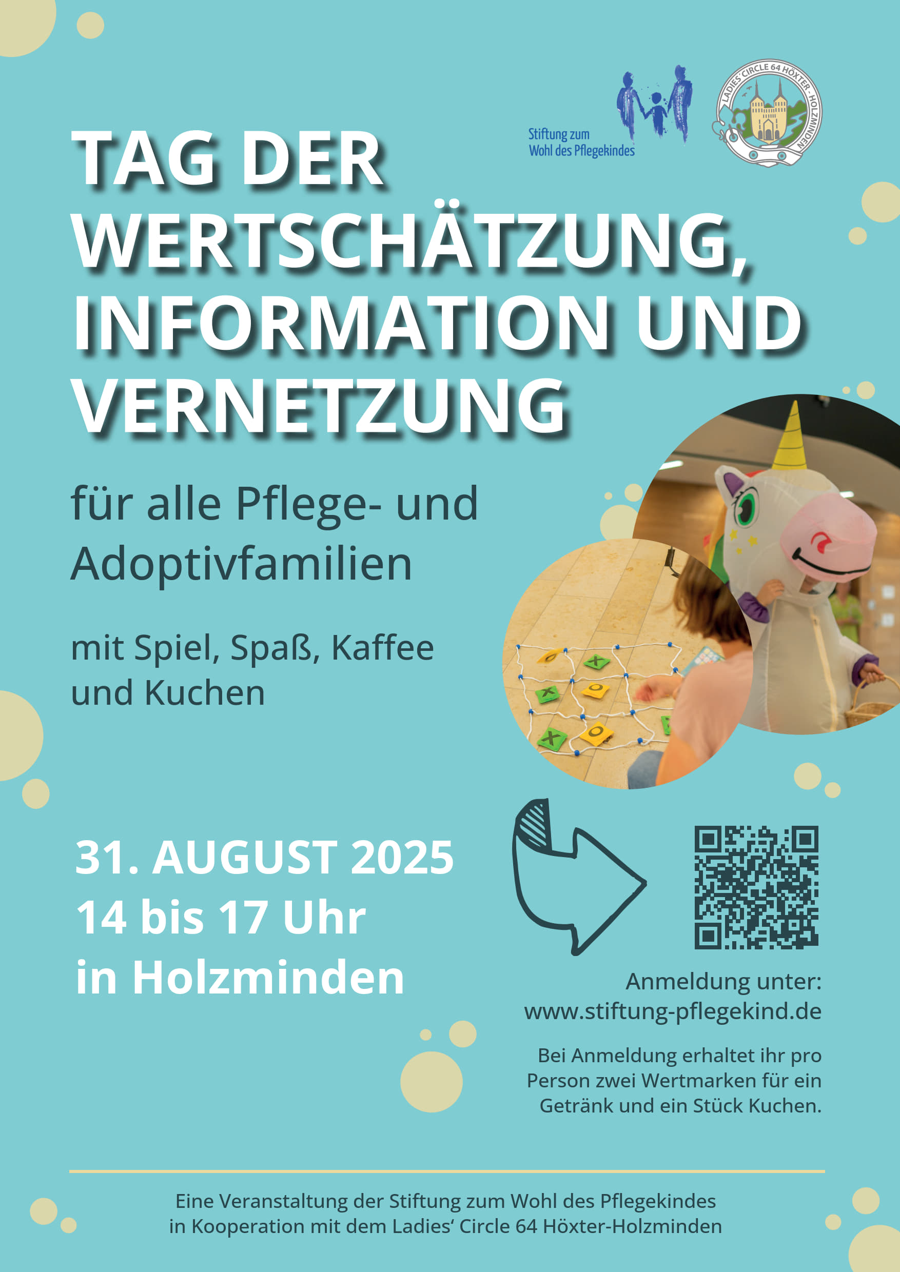 Bereits zum dritten Mal veranstalten die Stiftung zum Wohl des Pflegekindes und der Service-Club Ladies‘ Circle Höxter-Holzminden das Sommerfest für Pflege- und Adoptivfamilien aus den Kreisen Höxter und Holzminden. Am Sonntag, den 31.08.2025, können sich die Familien in an einem Ort in Holzminden von 14 bis 17 Uhr untereinander ungezwungen bei Essen, Getränken und einem großen Spielangebot für Kinder kennenlernen und Erfahrungen, Gemeinsamkeiten und Tipps austauschen. Weitere Informationen bieten Institutionen wie der PFAD (Landesverband für Pflege- und Adoptivfamilien), das Projekt Begegnung, das Amt für Soziales Höxter, das Jugendamt Holzminden, der Pflegekinderdienst Holzminden und der Sozialverein Katholischer Frauen (Ortsgruppe Warburg) vor Ort an.